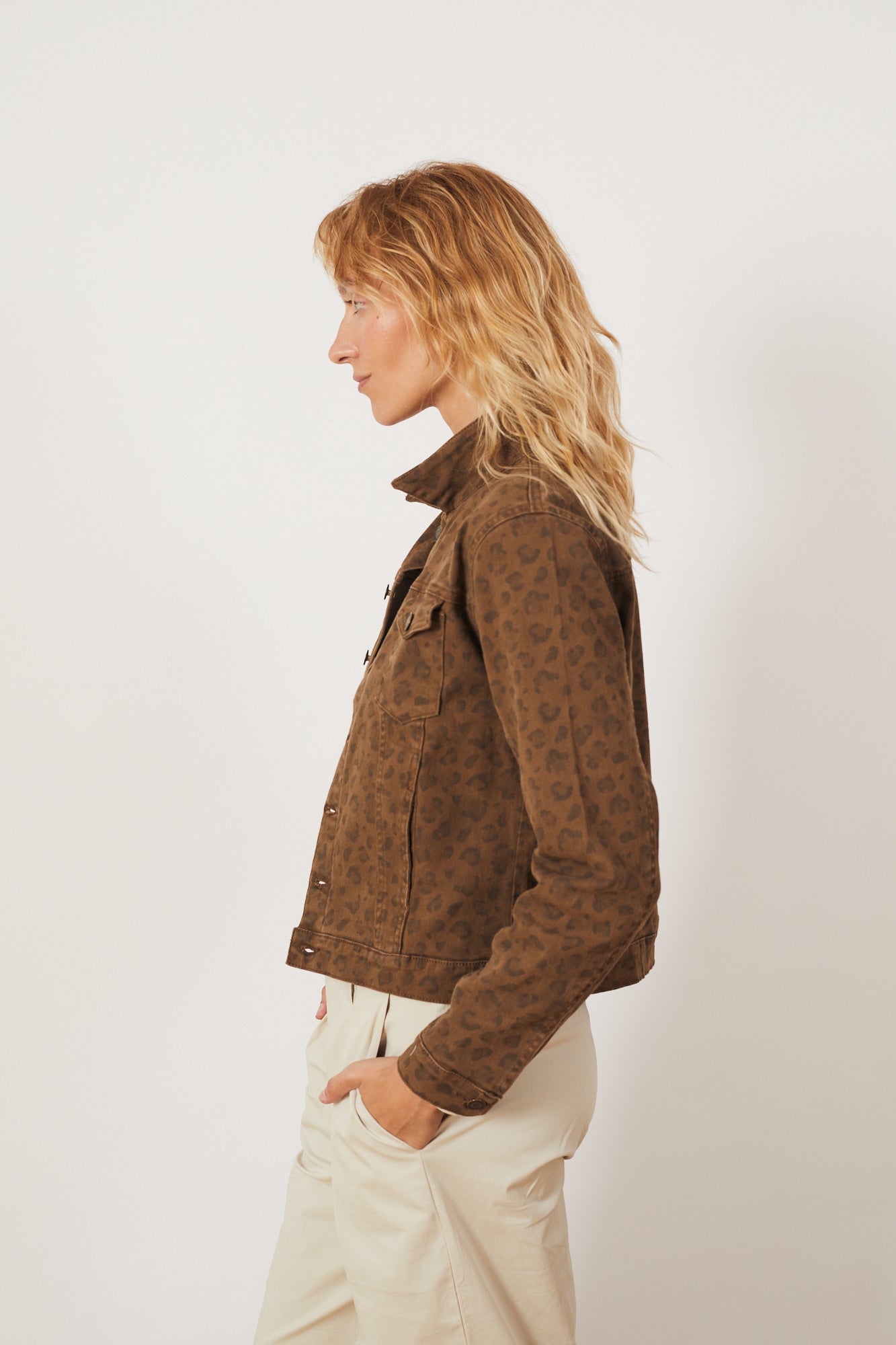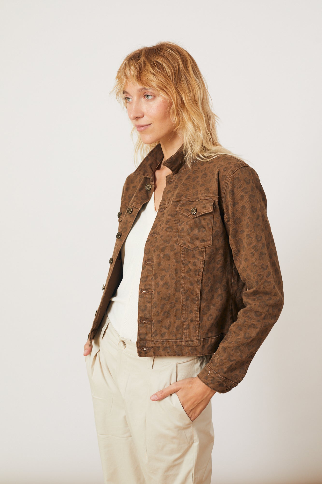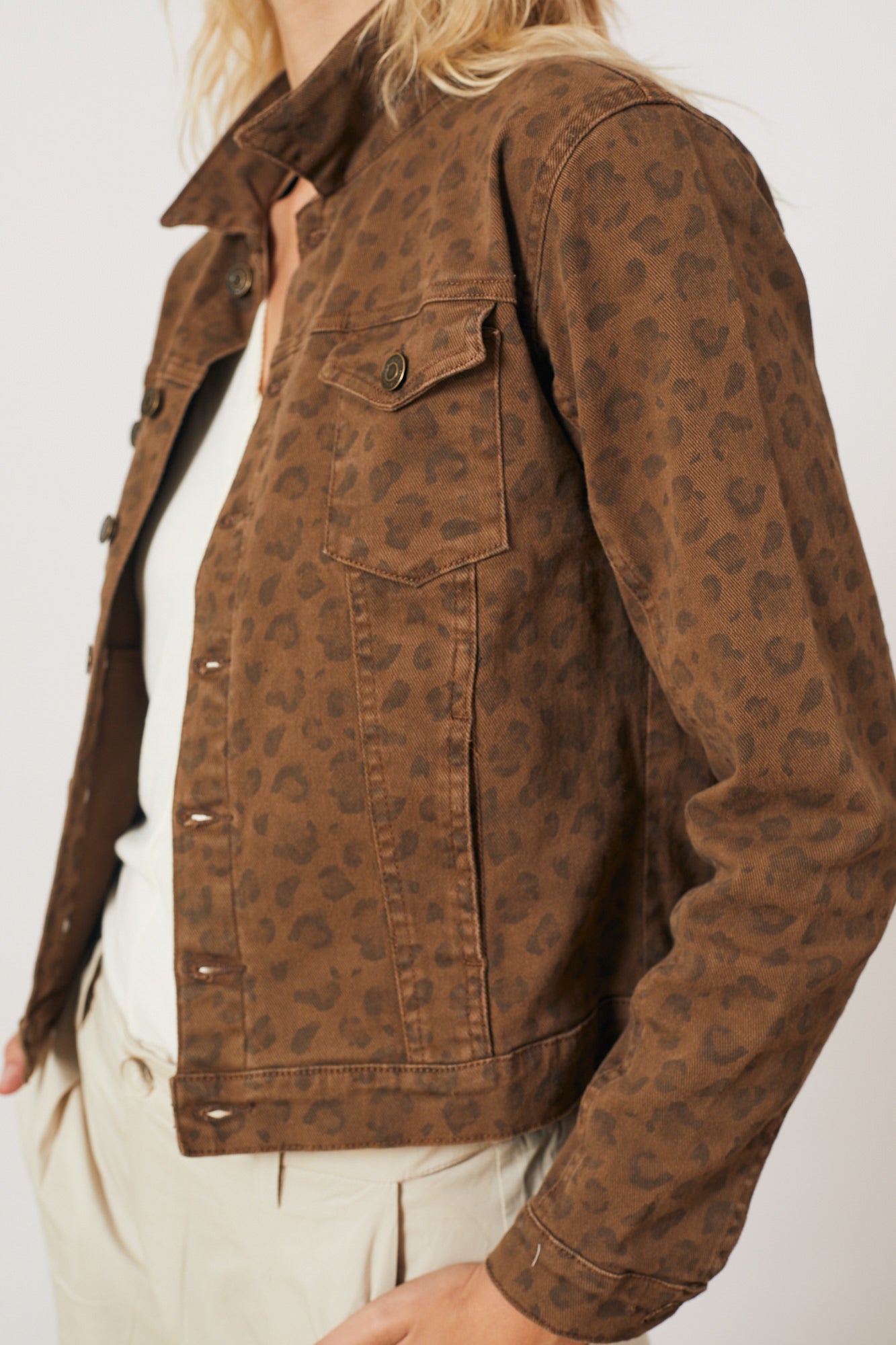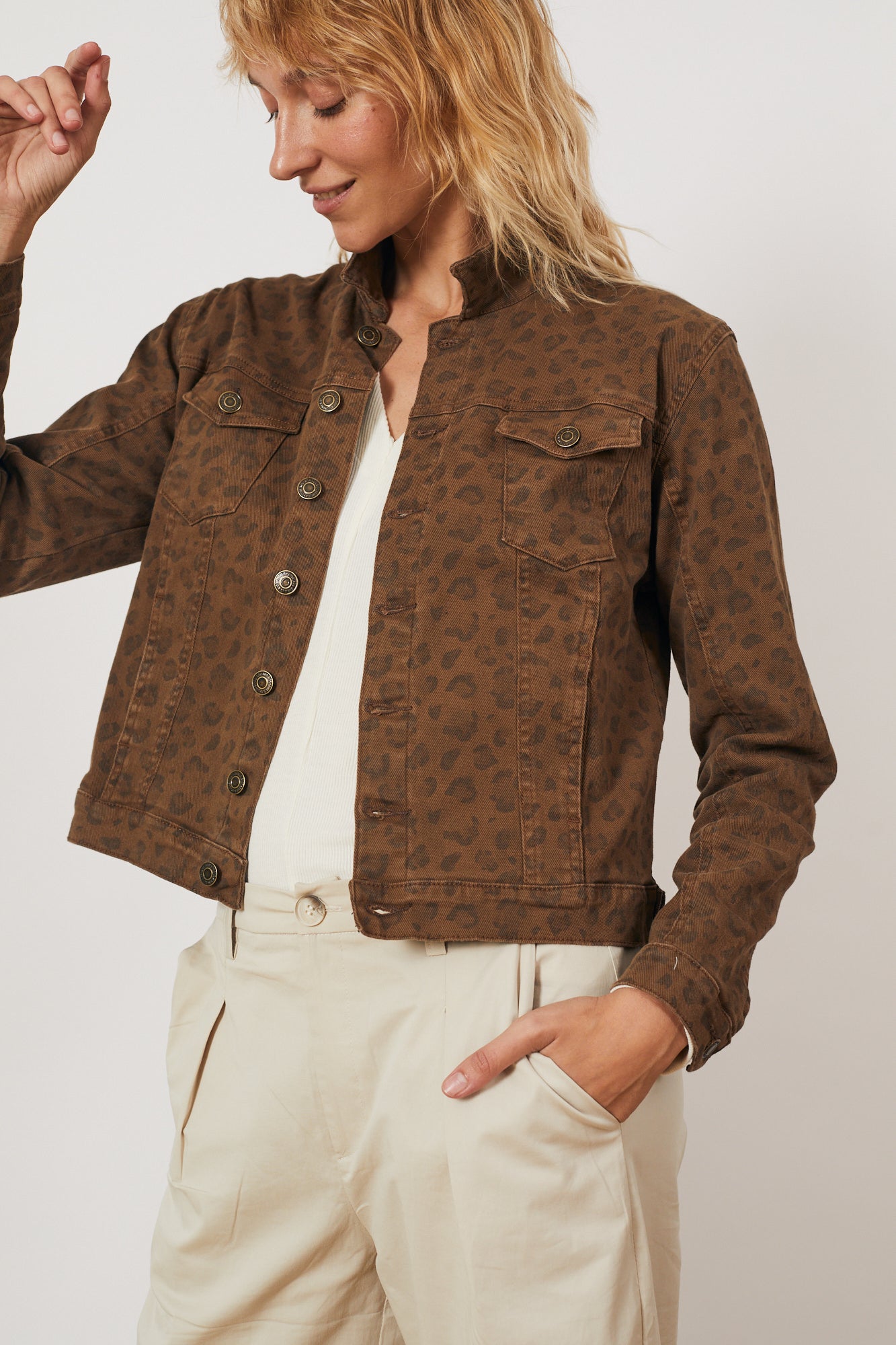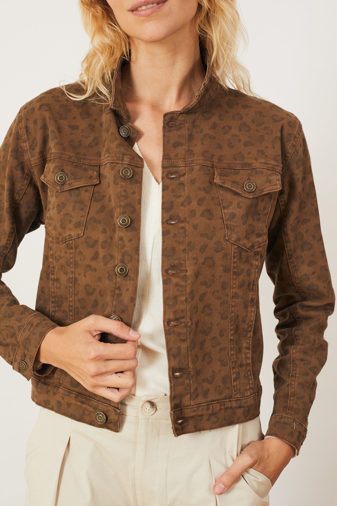 ז'קט ג'ינס מנומר עם כפתורים וצווארון