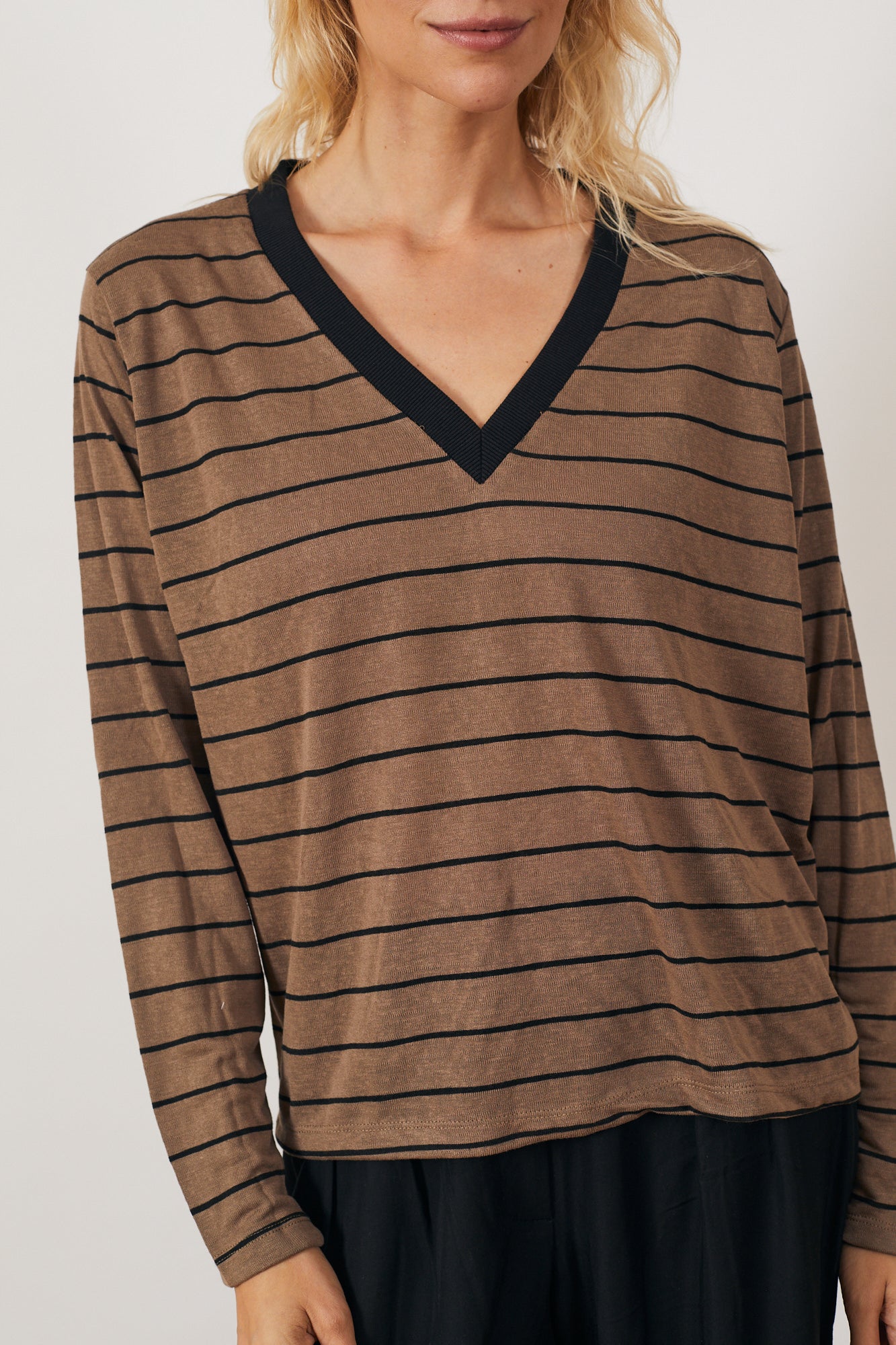 חולצת אוורירית עם מפתח וי עמוק בגזרת אוברסייז