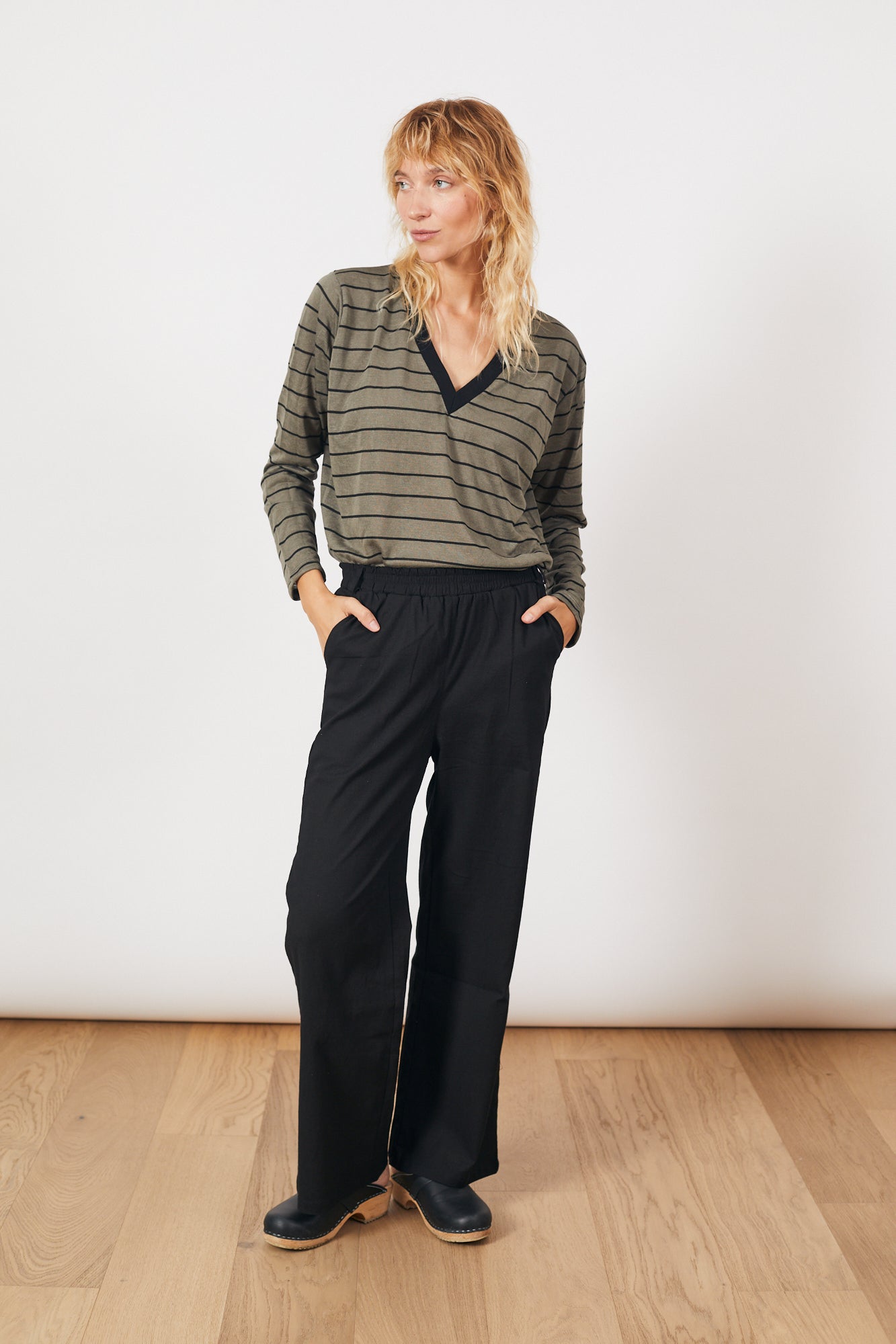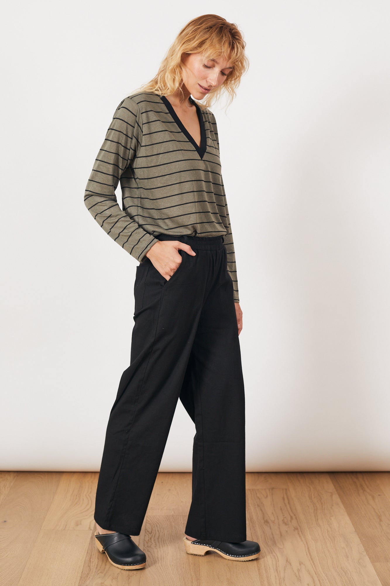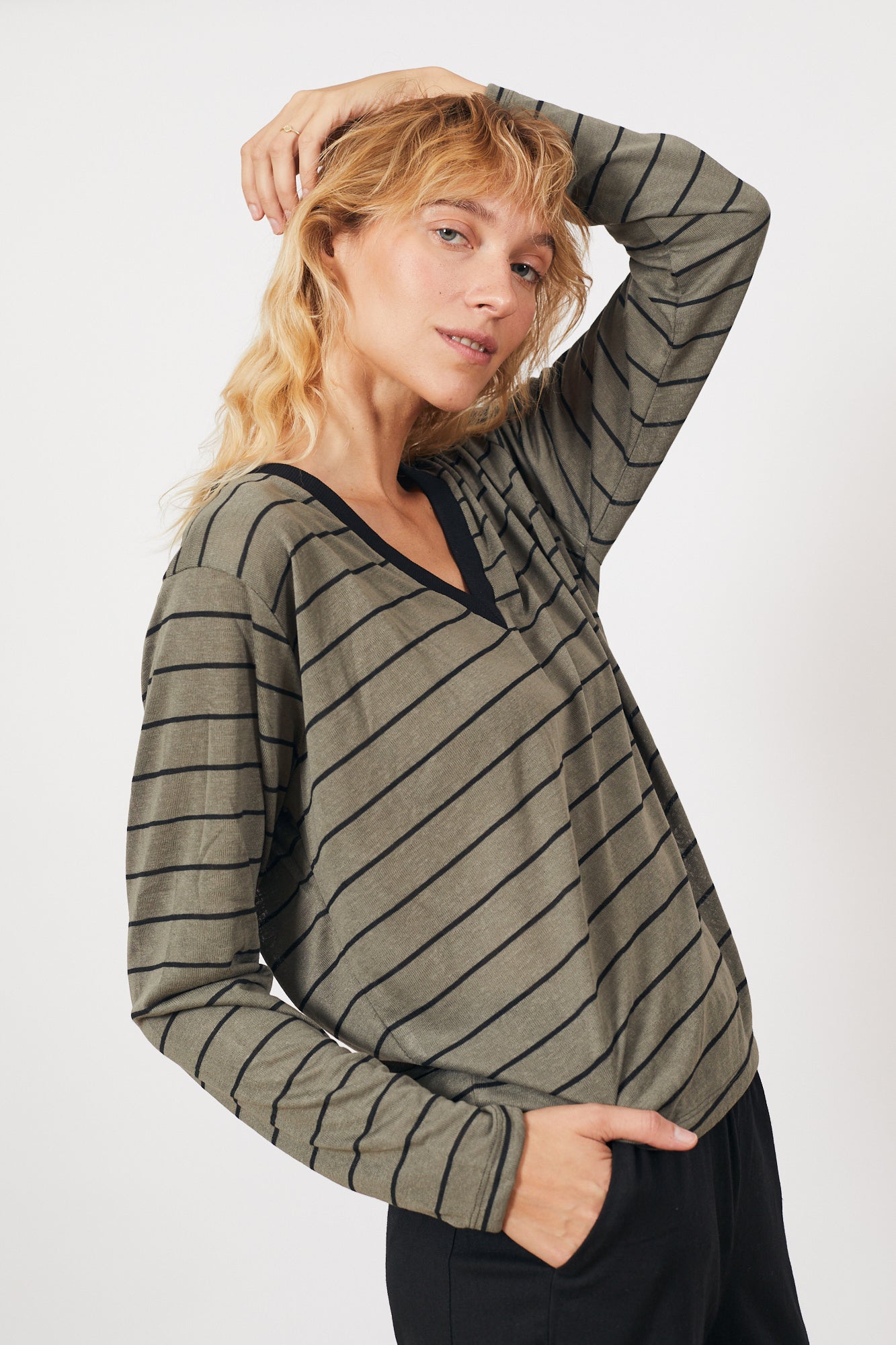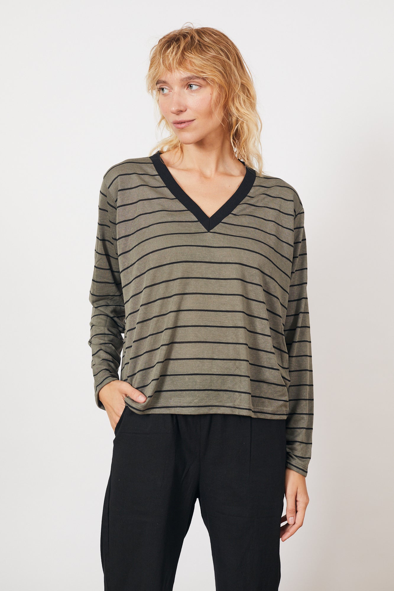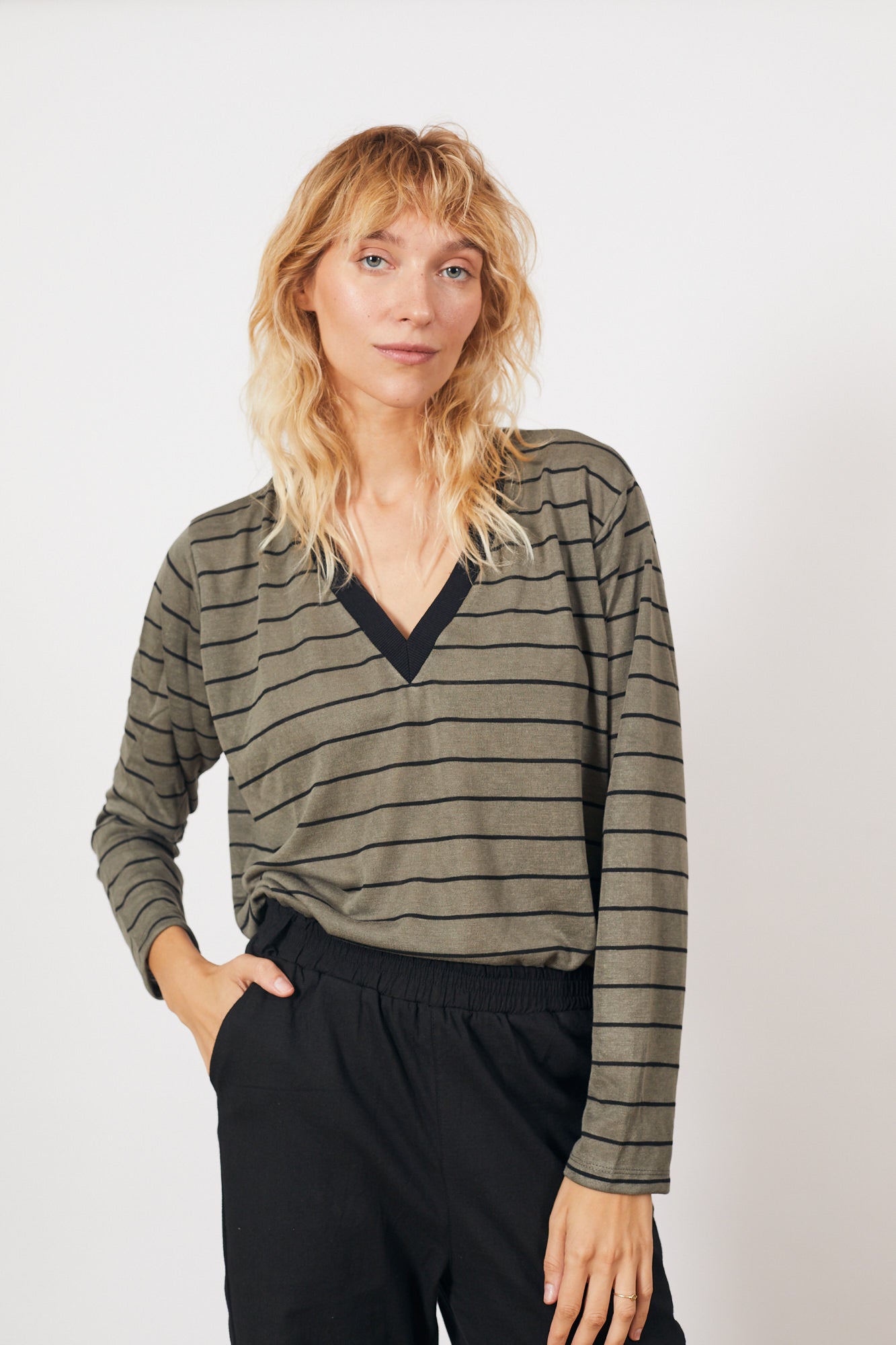 חולצת אלה זית פס