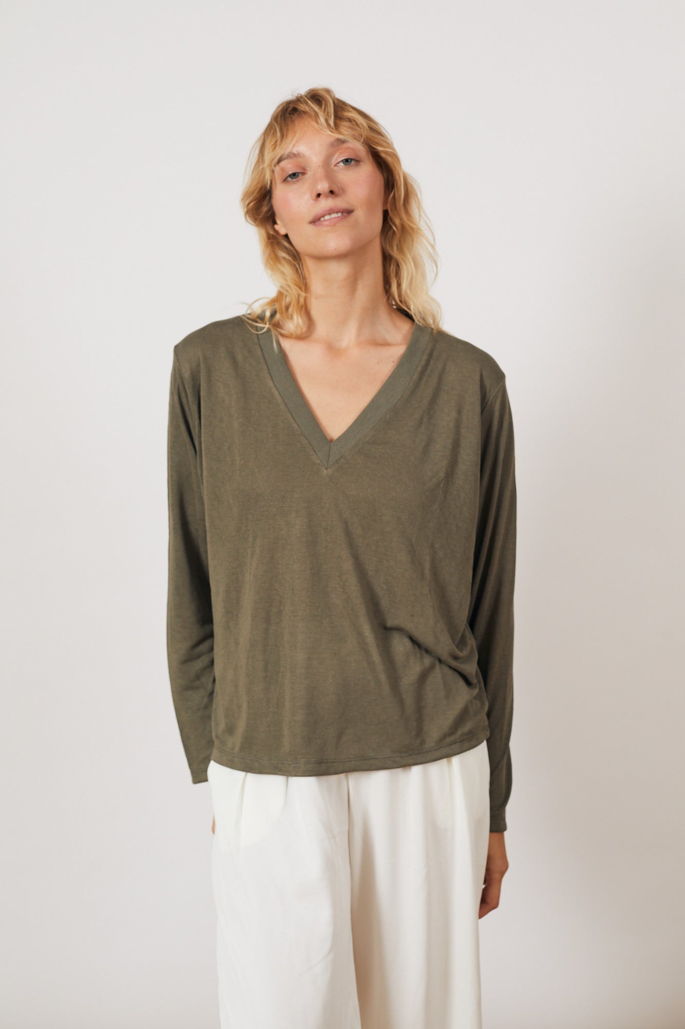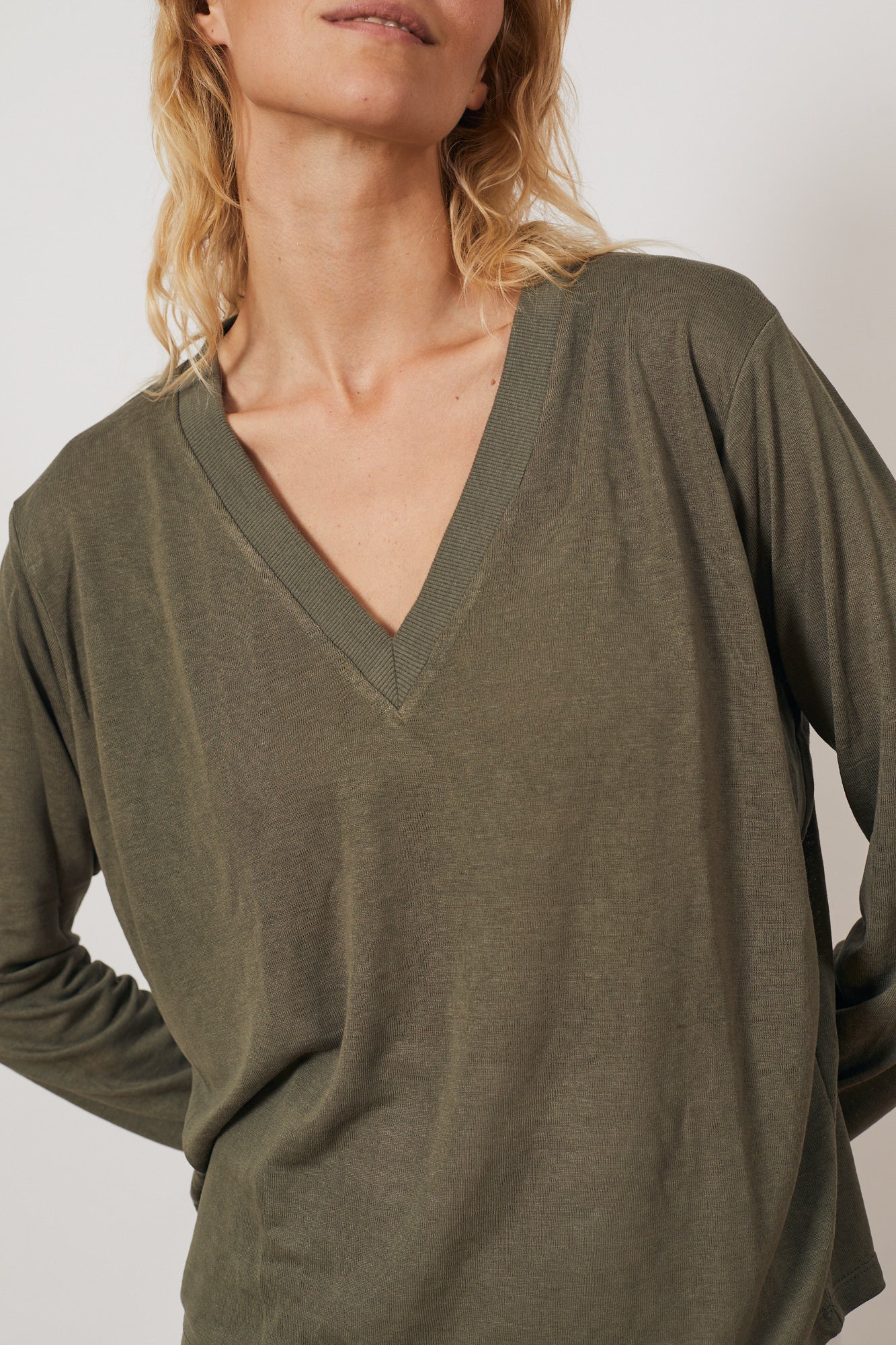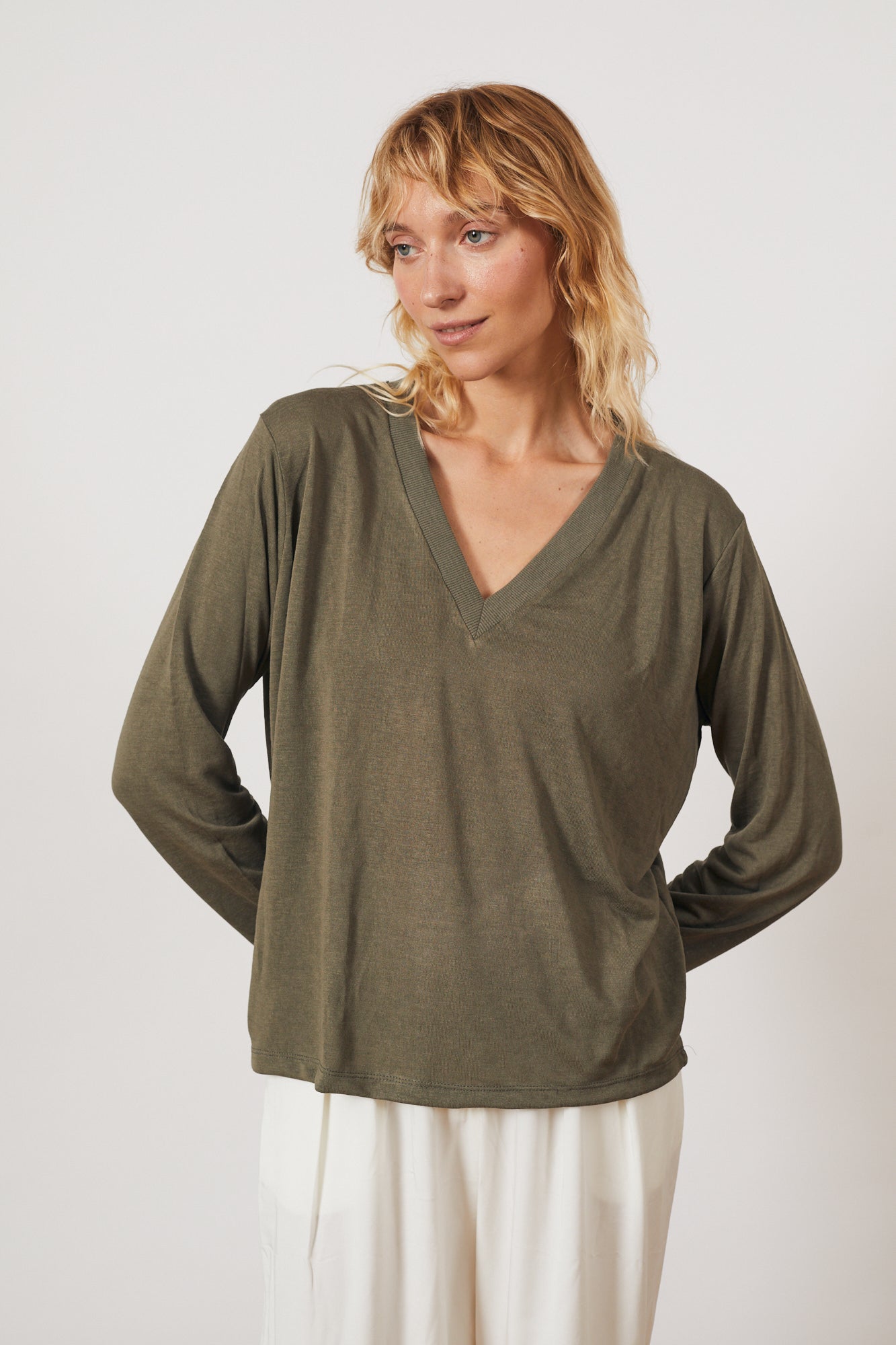 חולצת אוורירית עם מפתח וי עמוק בגזרת אוברסייז