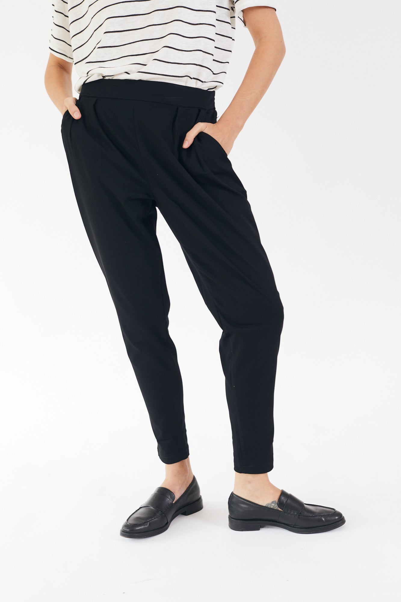 כיסים צדדיים, רחבים בחלק העליון ומצטמצמים בקרסול