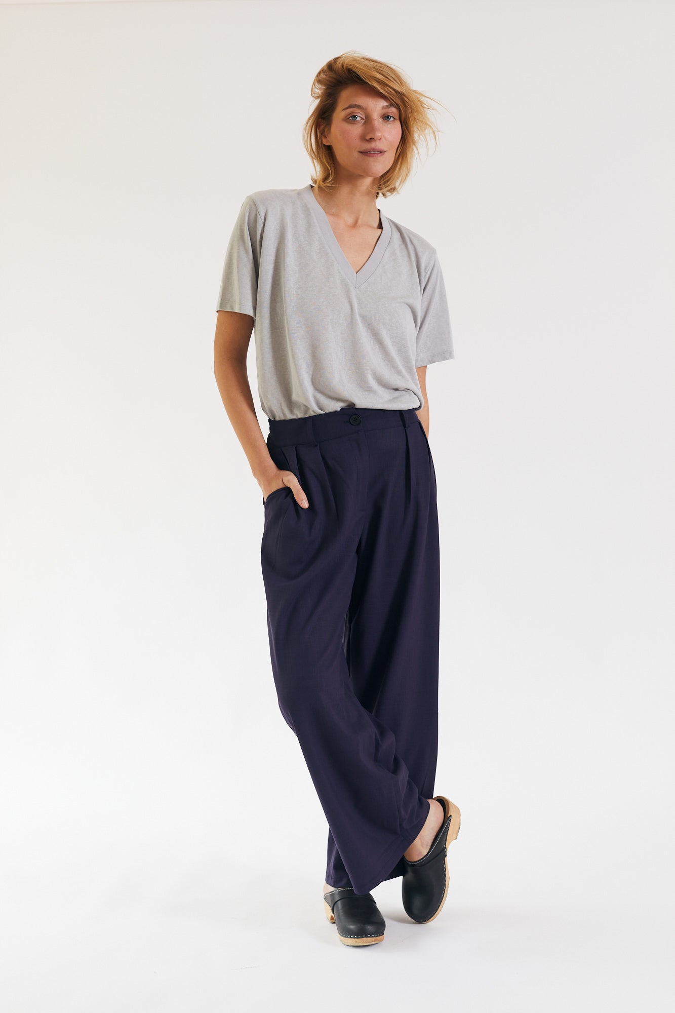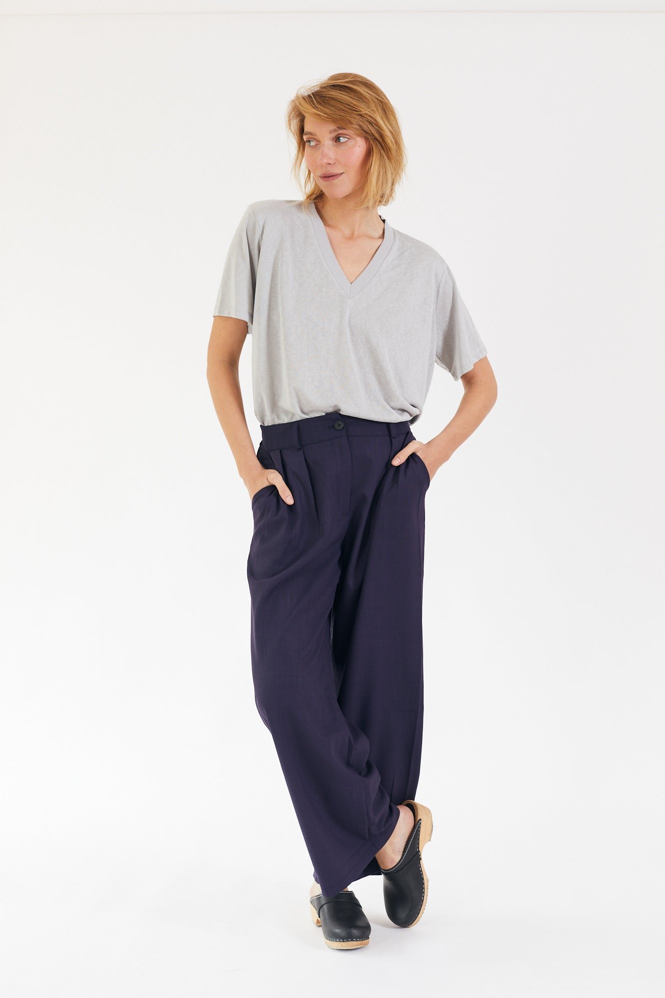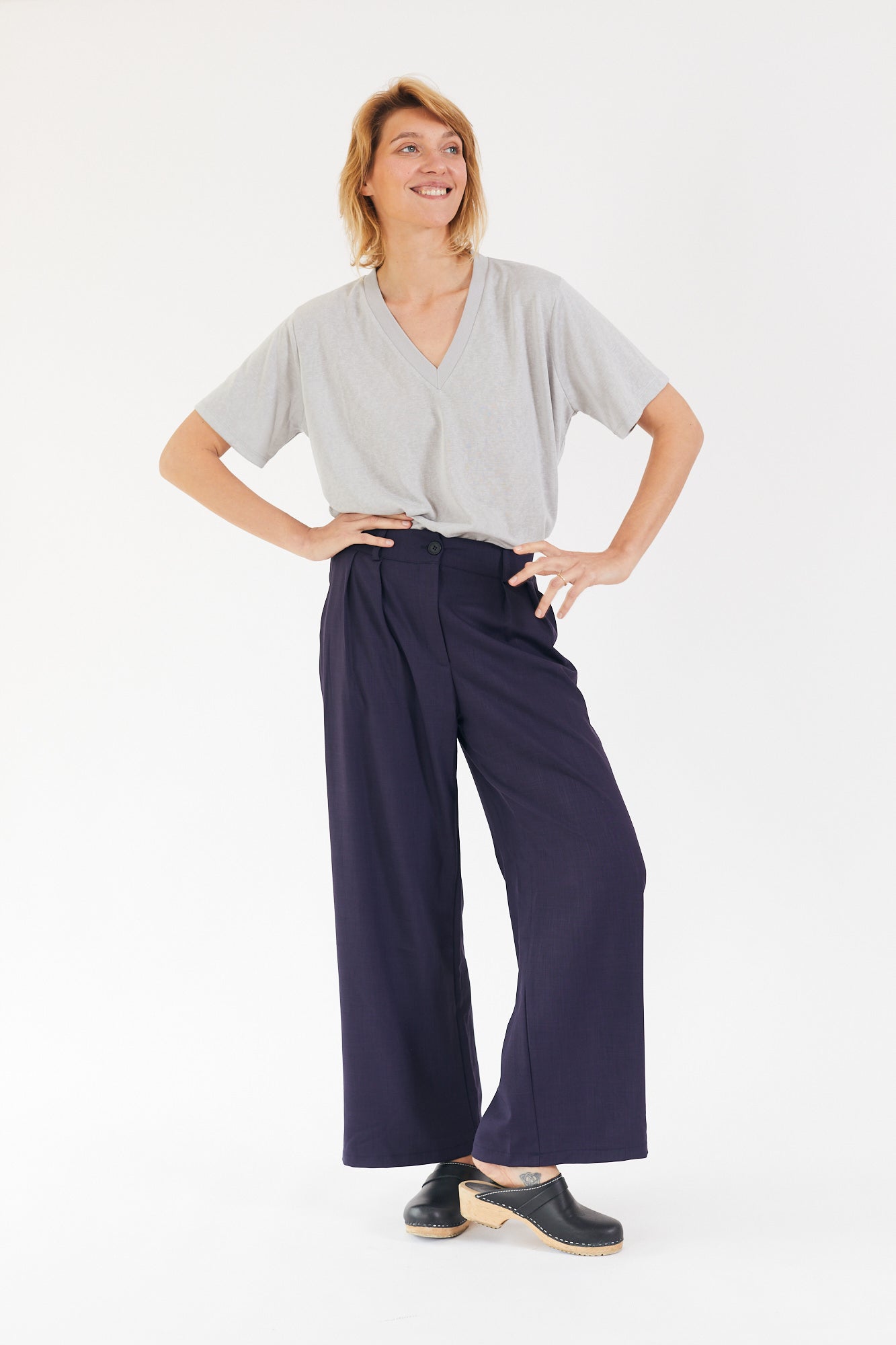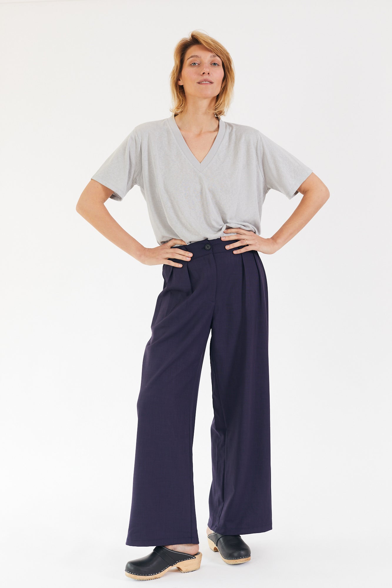 מכנסיים נשפכים ומתרחבים שמתאימים לעבודה או לערב