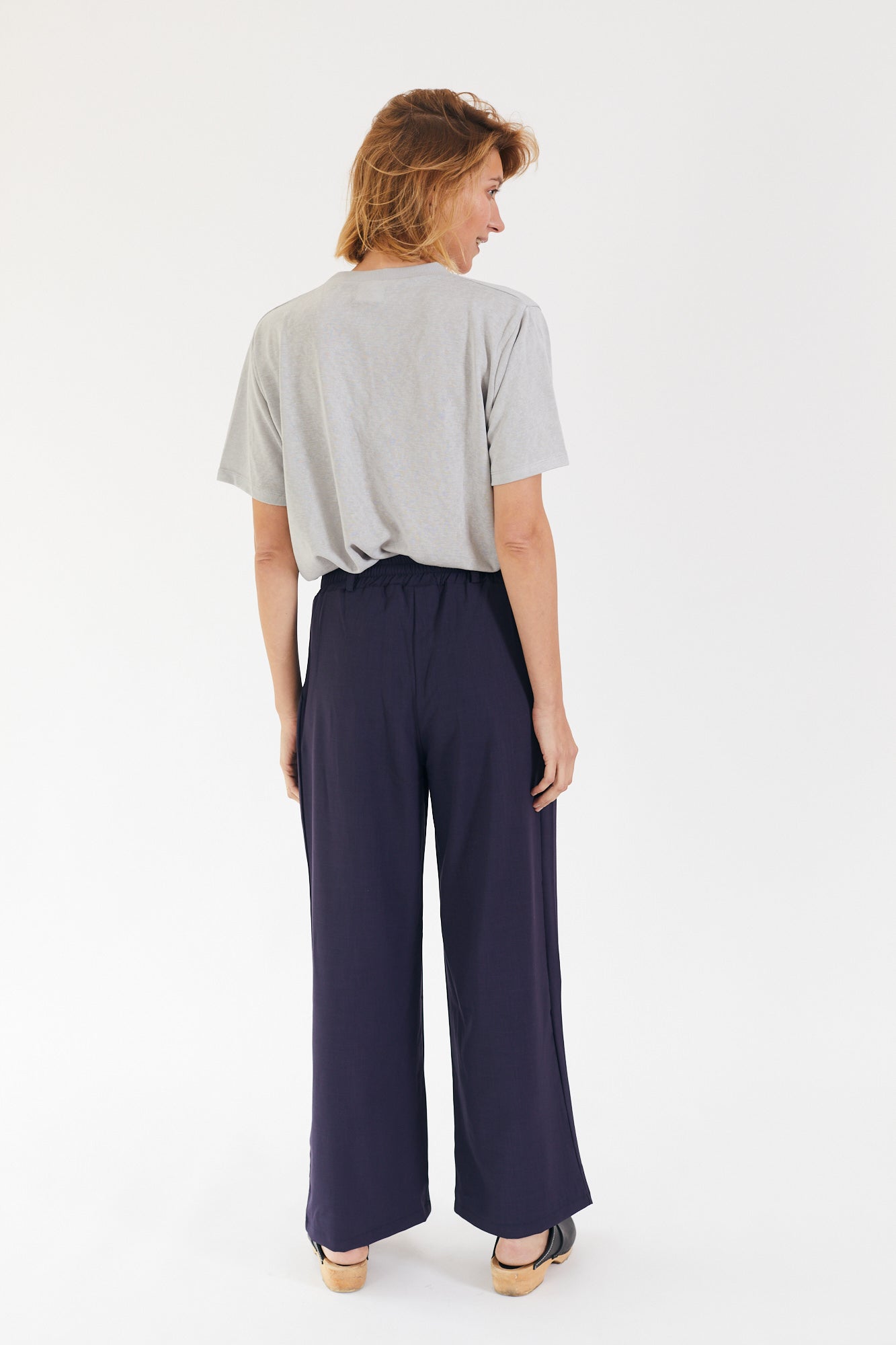מכנסיים בגיזרה גבוה עם גומי בגב עם כיסים צדדיים