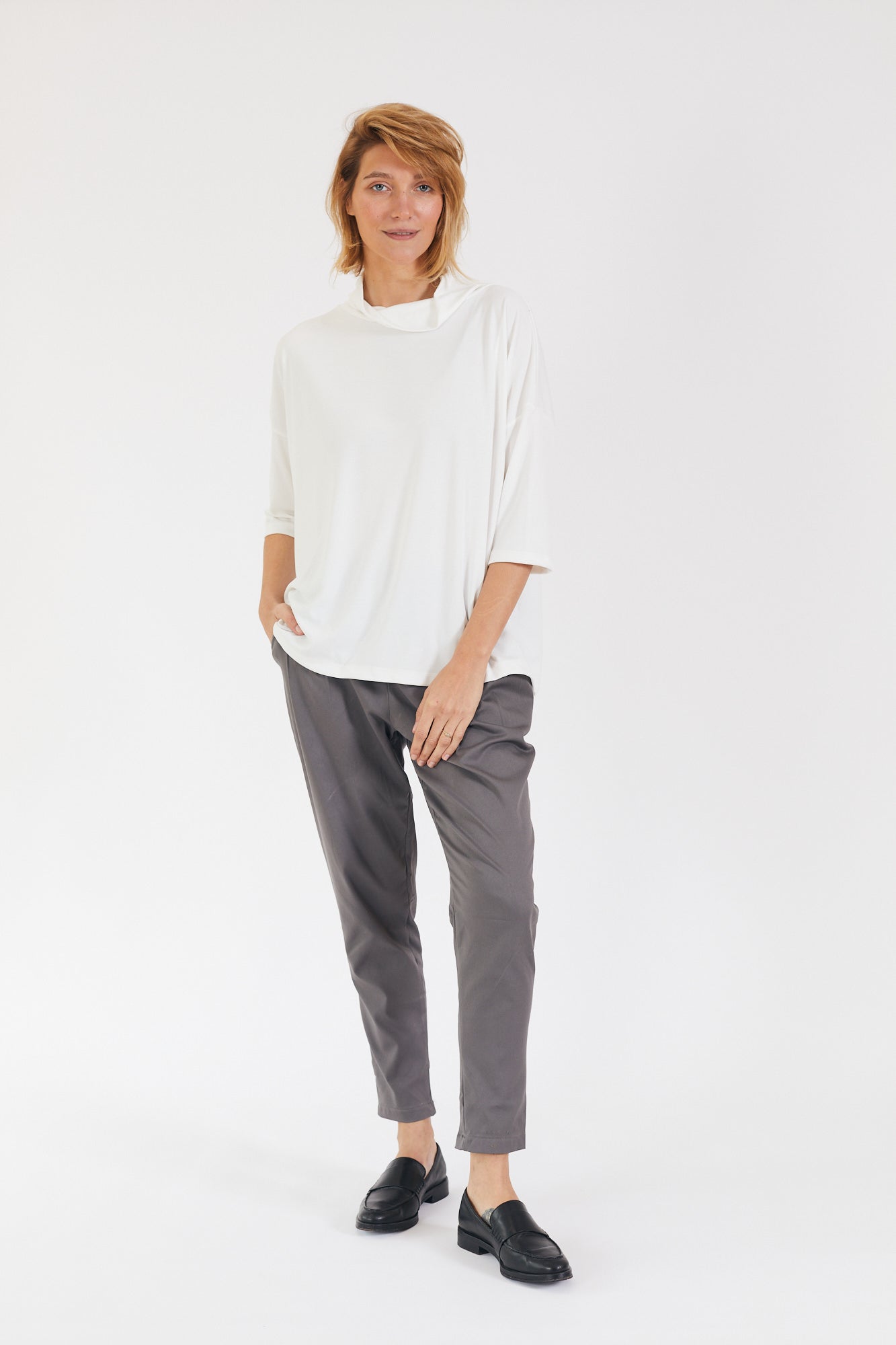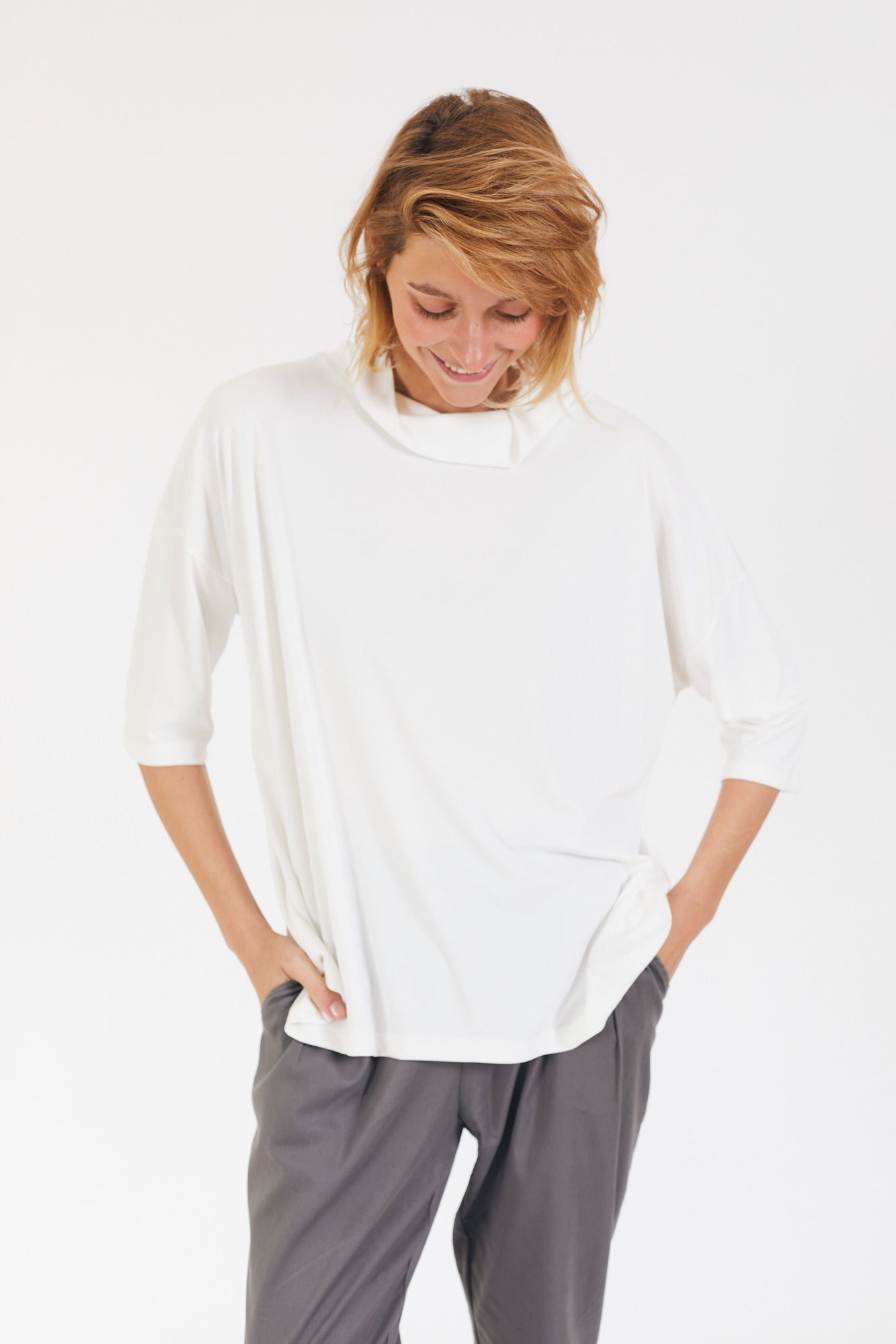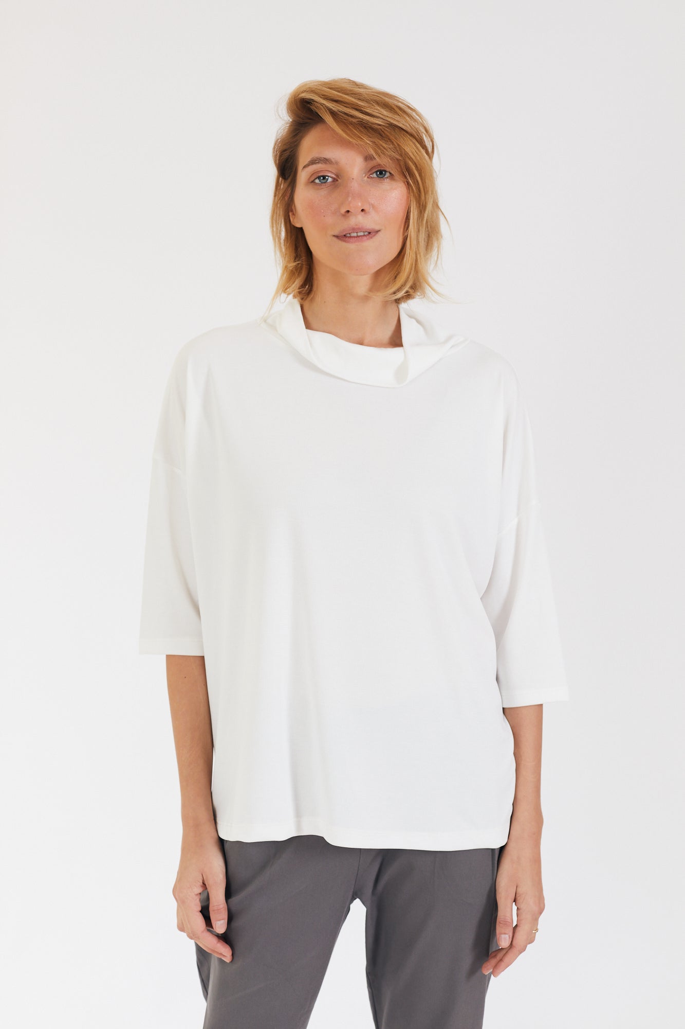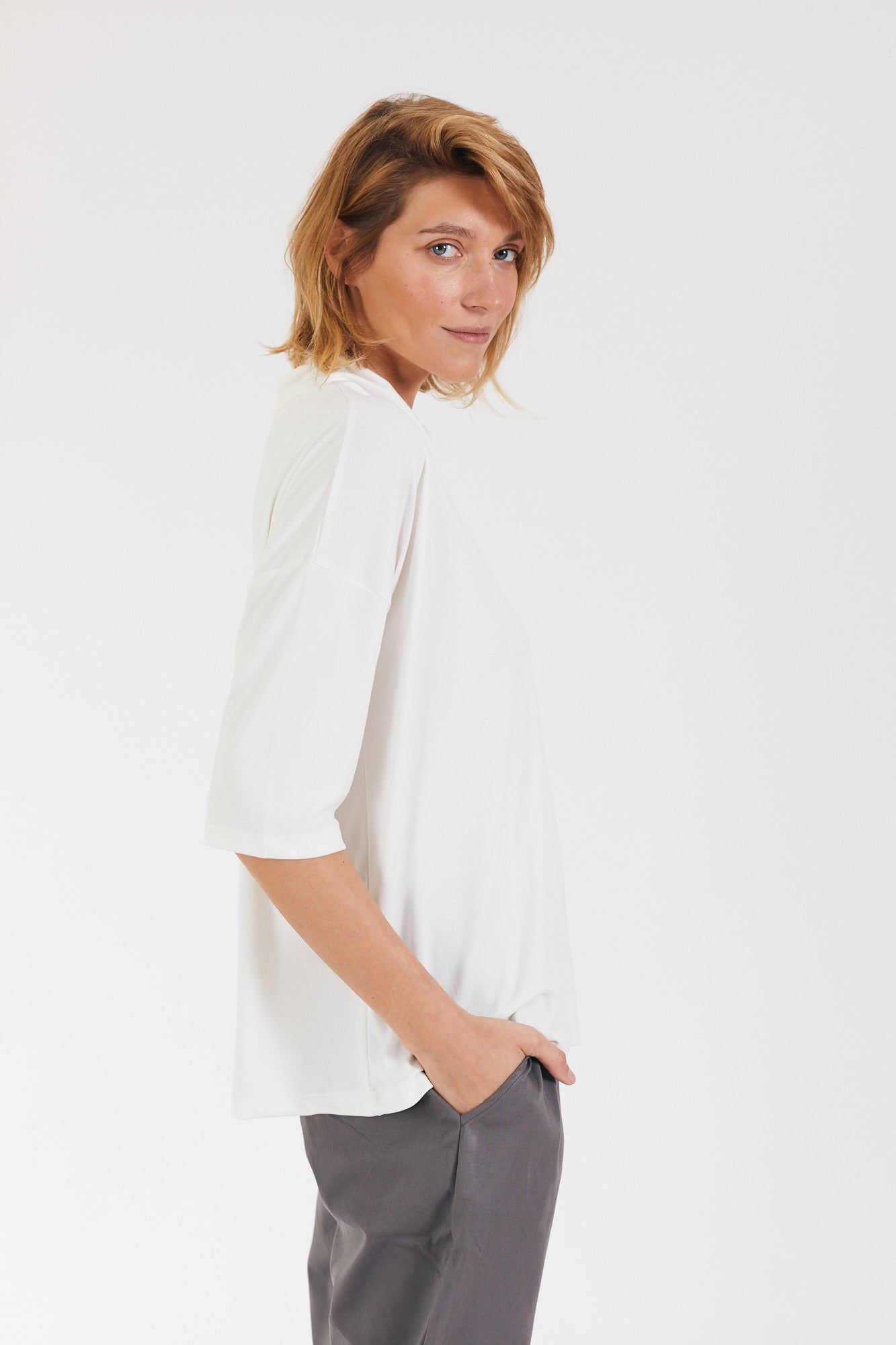 קצת אוברסייז, עם שרוול קצר ועם גולף נשפך