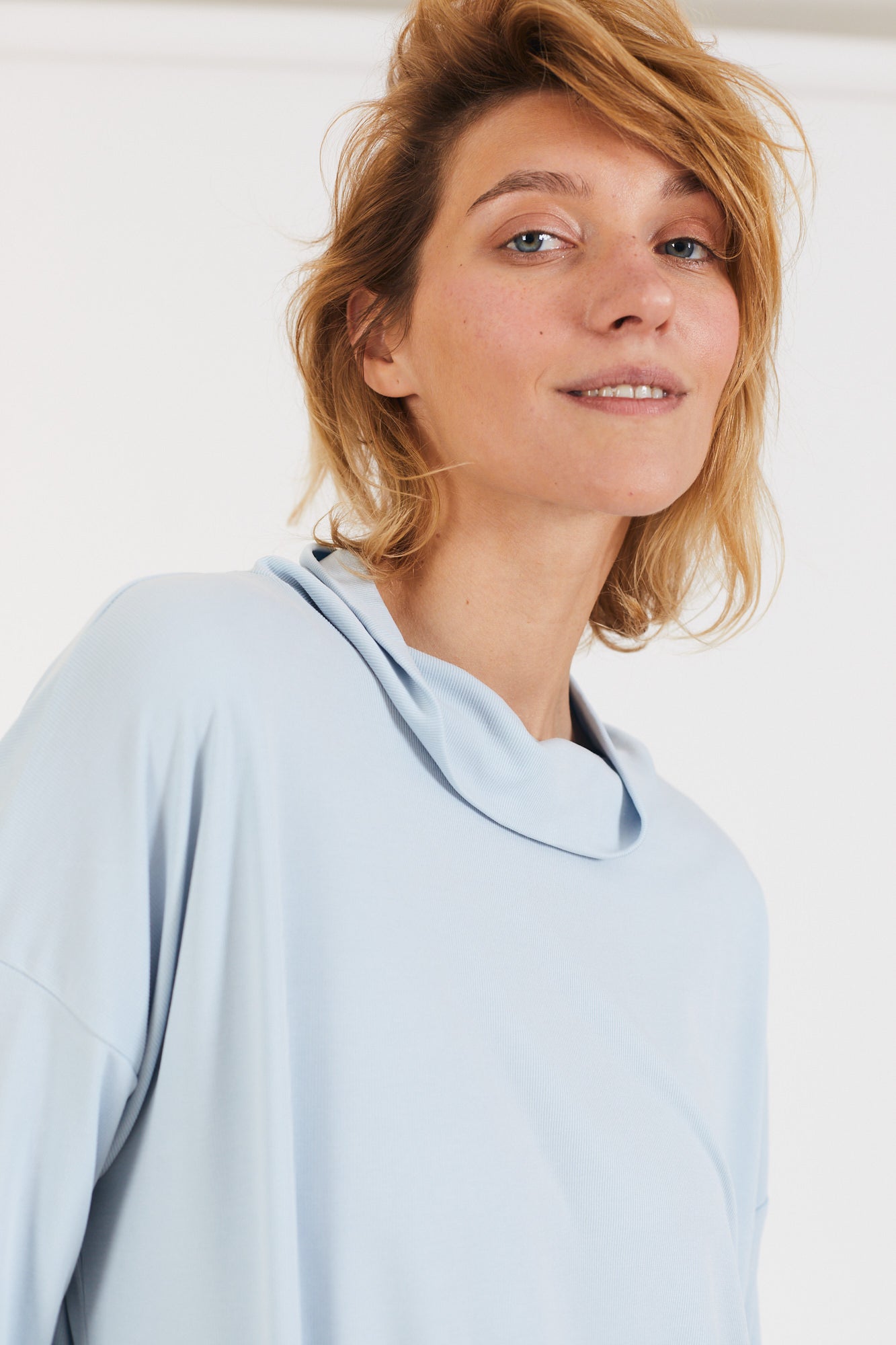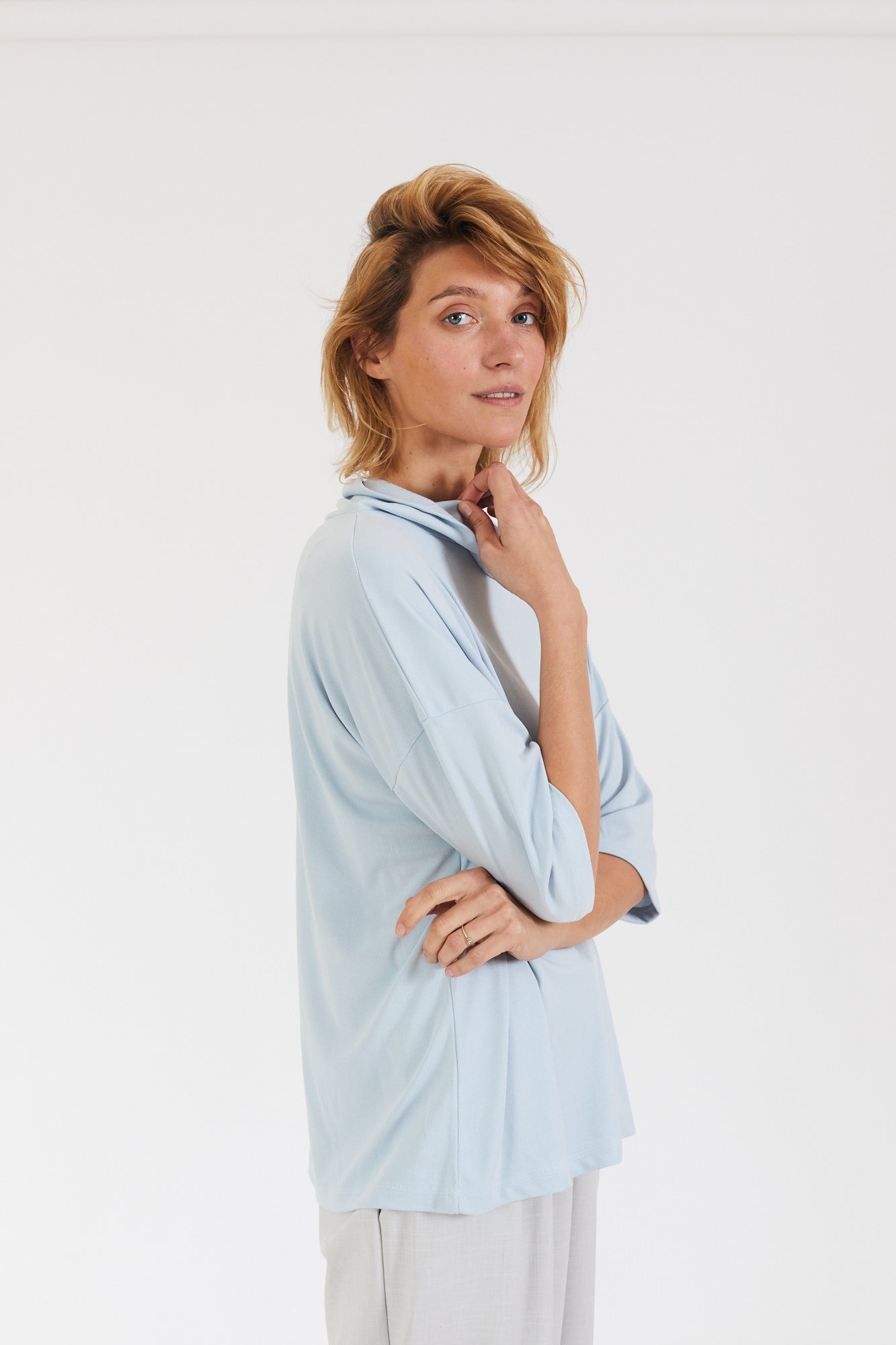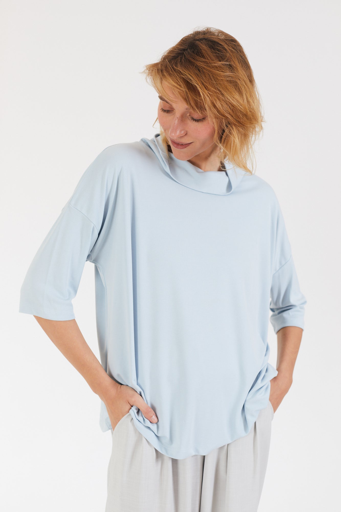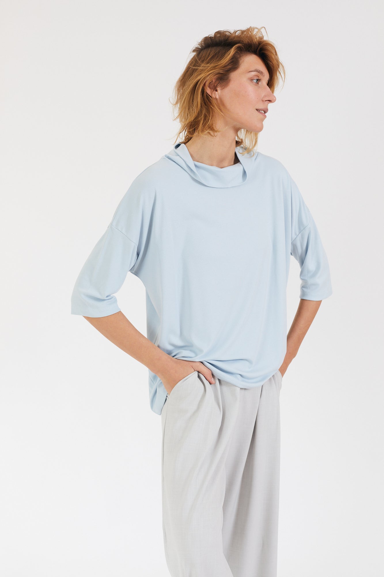 קצת אוברסייז, עם שרוול קצר ועם גולף נשפך