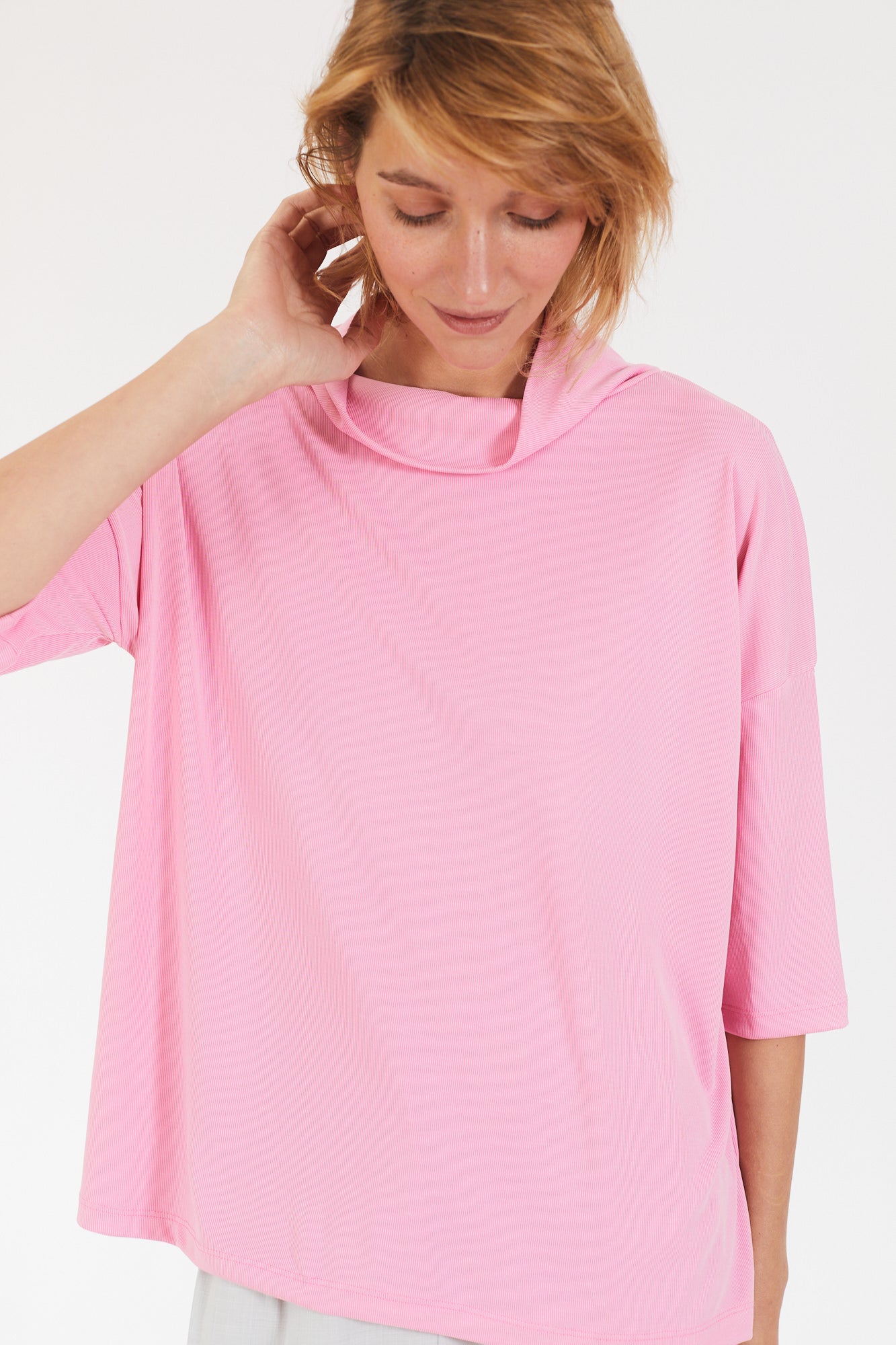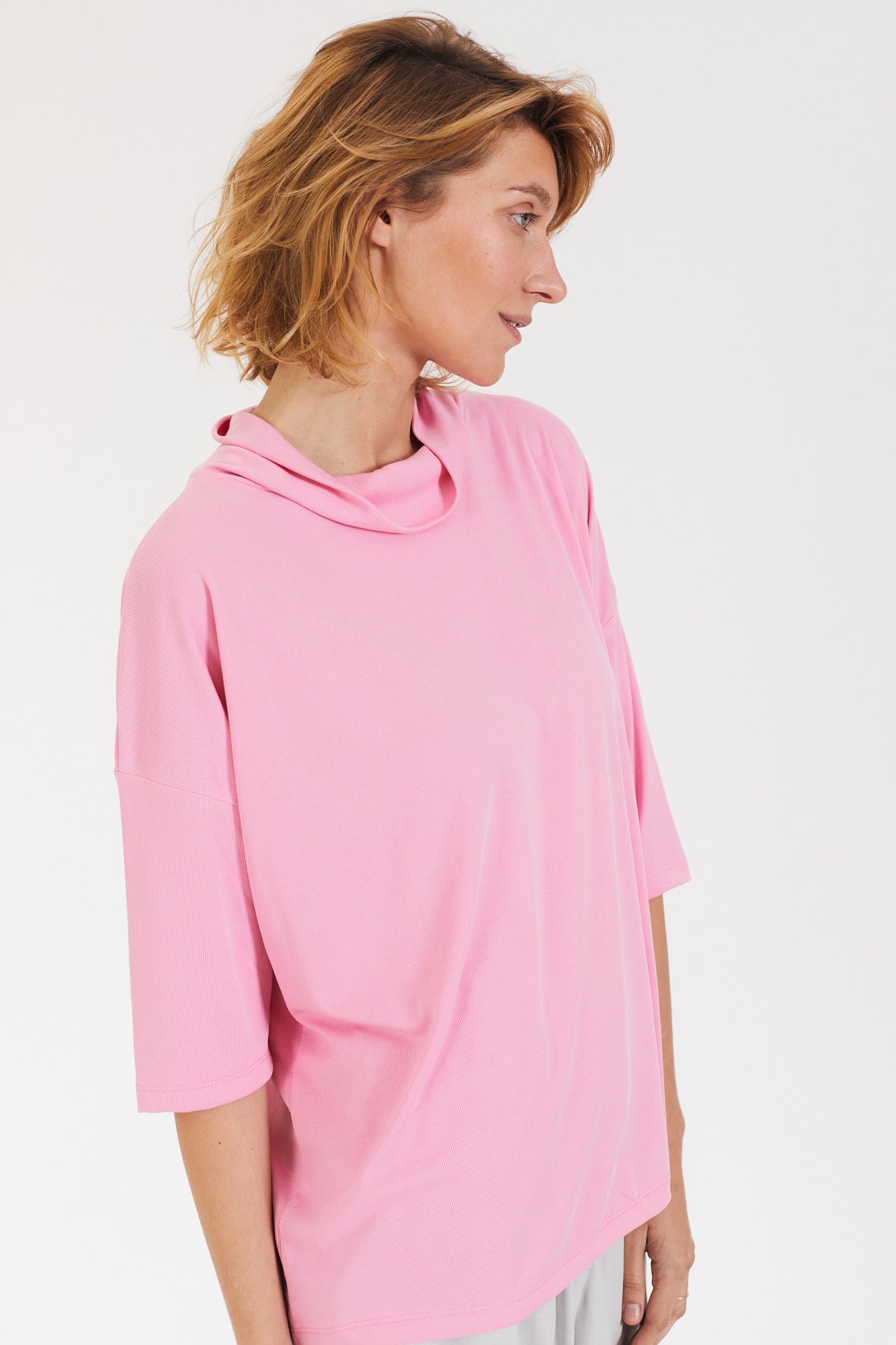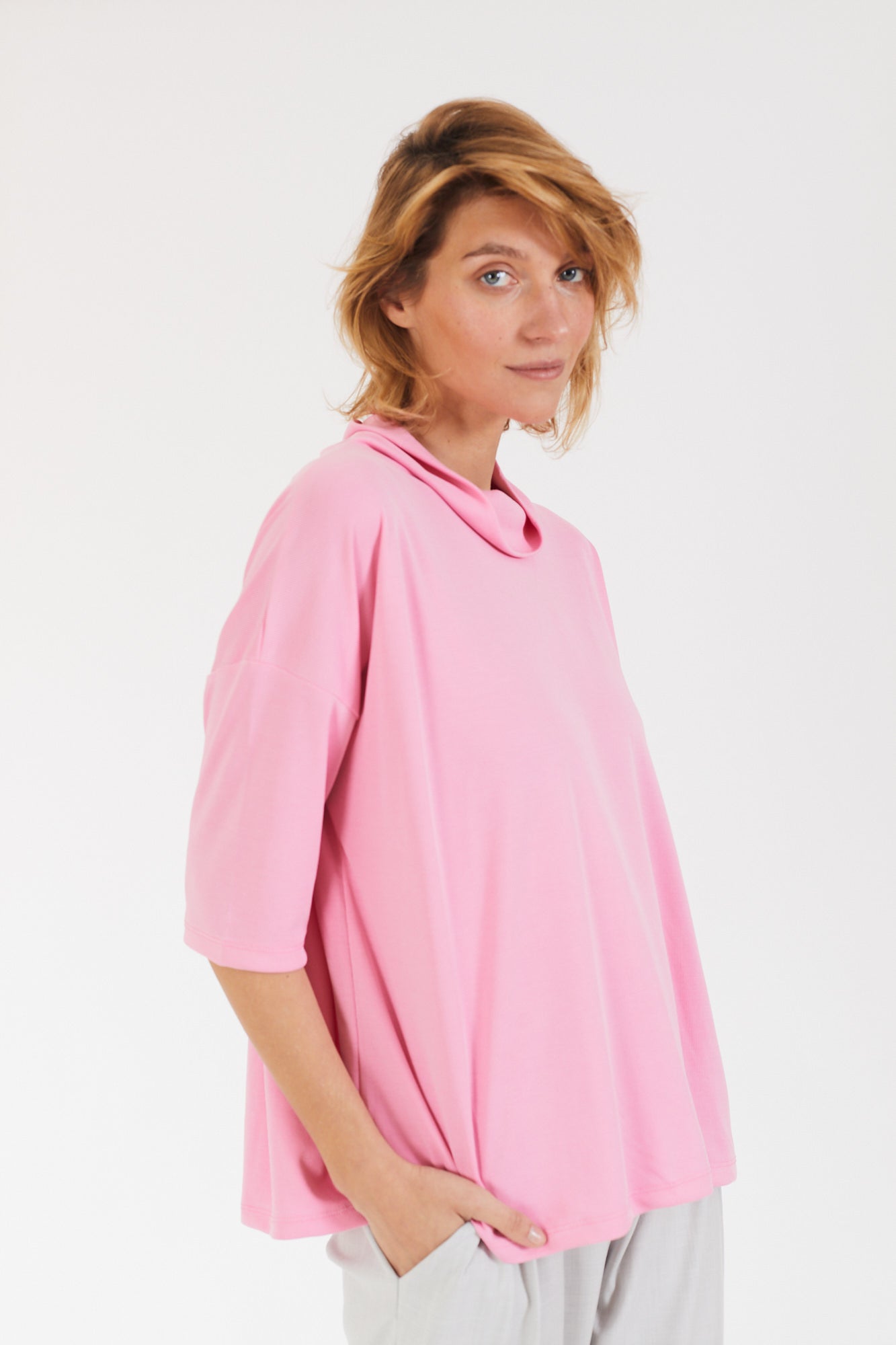 קצת אוברסייז, עם שרוול קצר ועם גולף נשפך