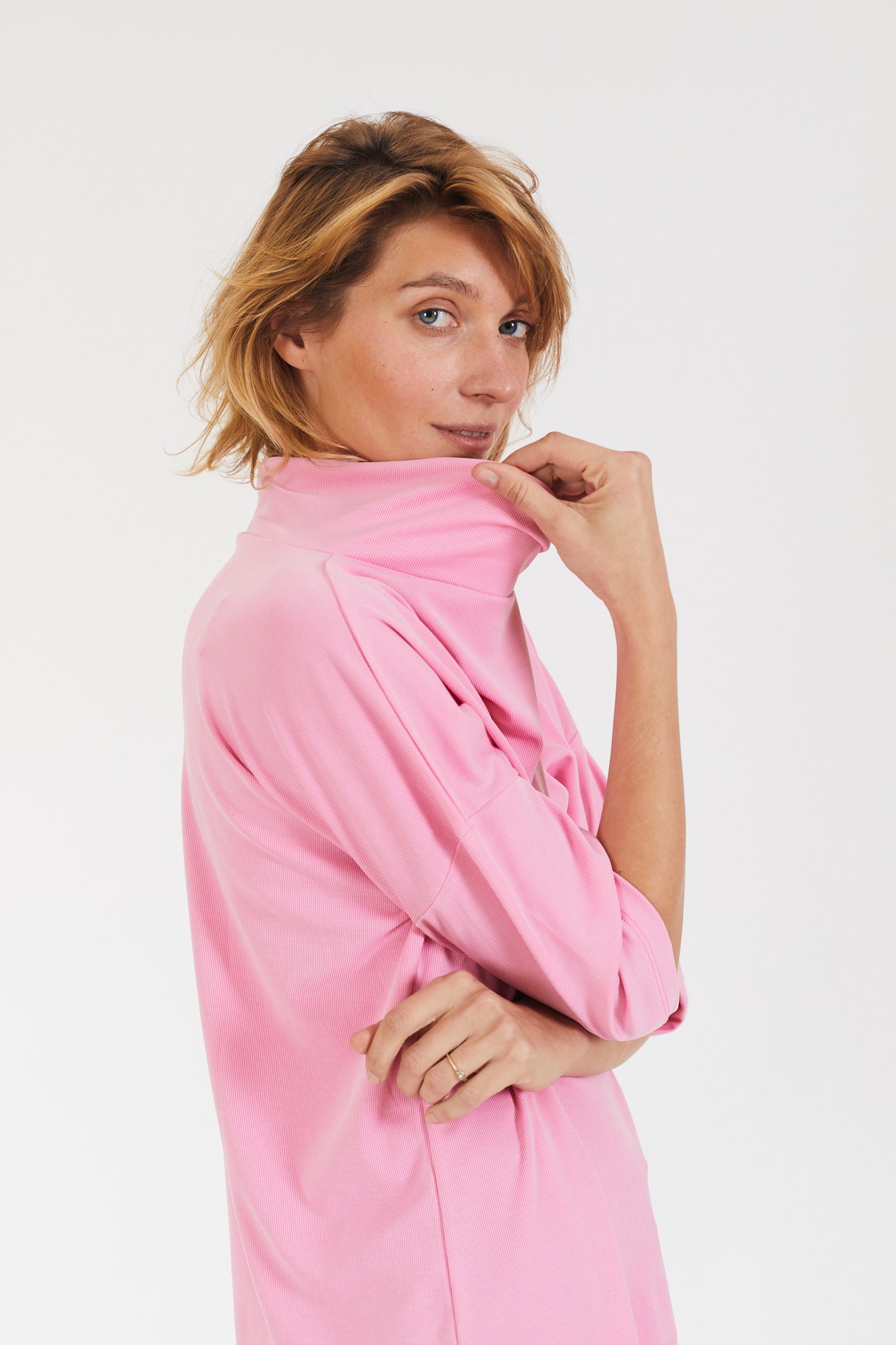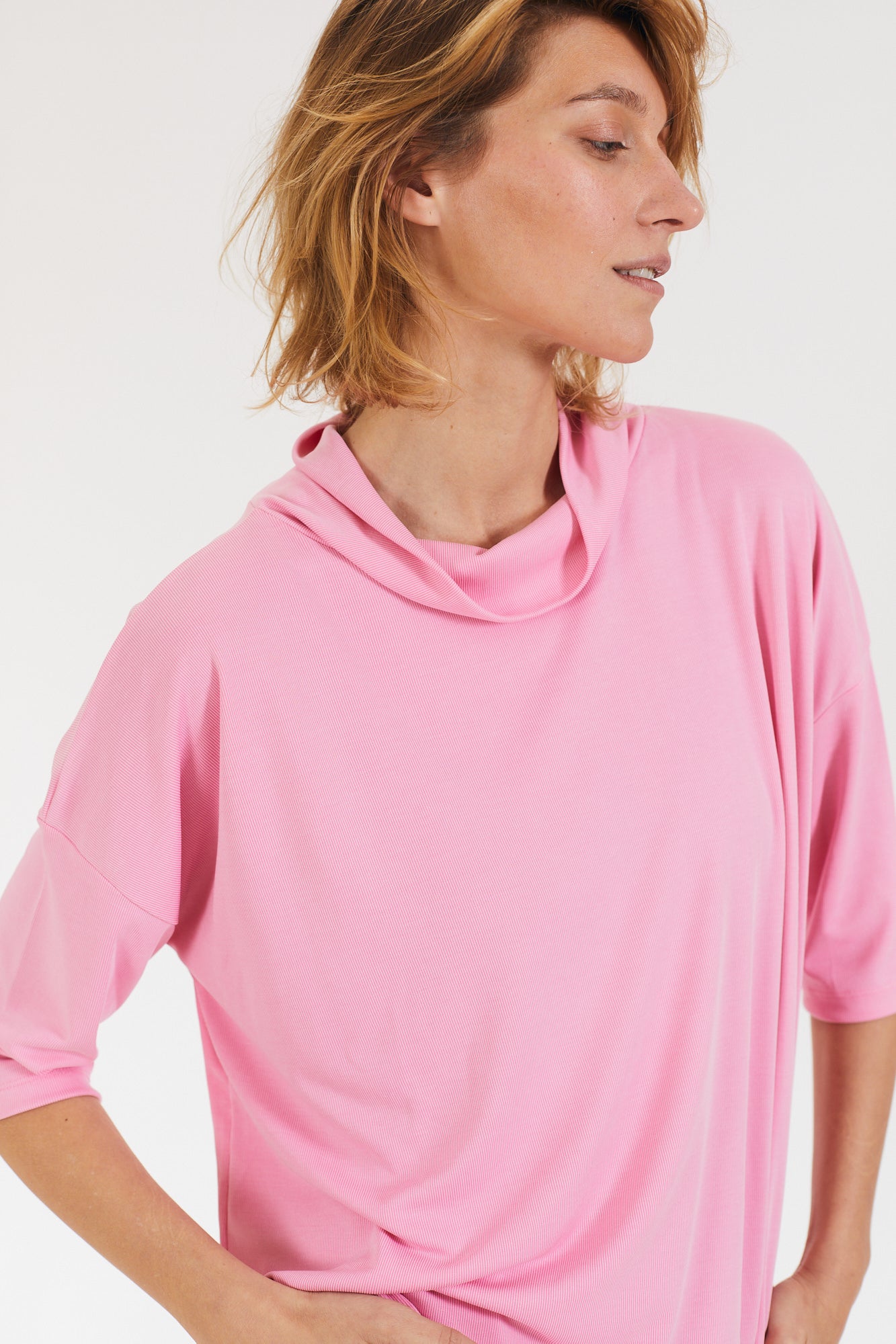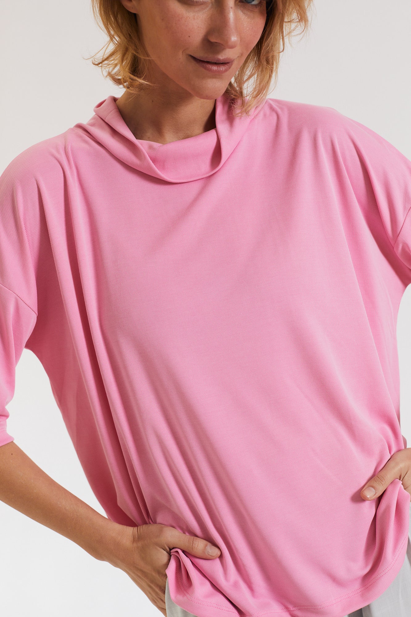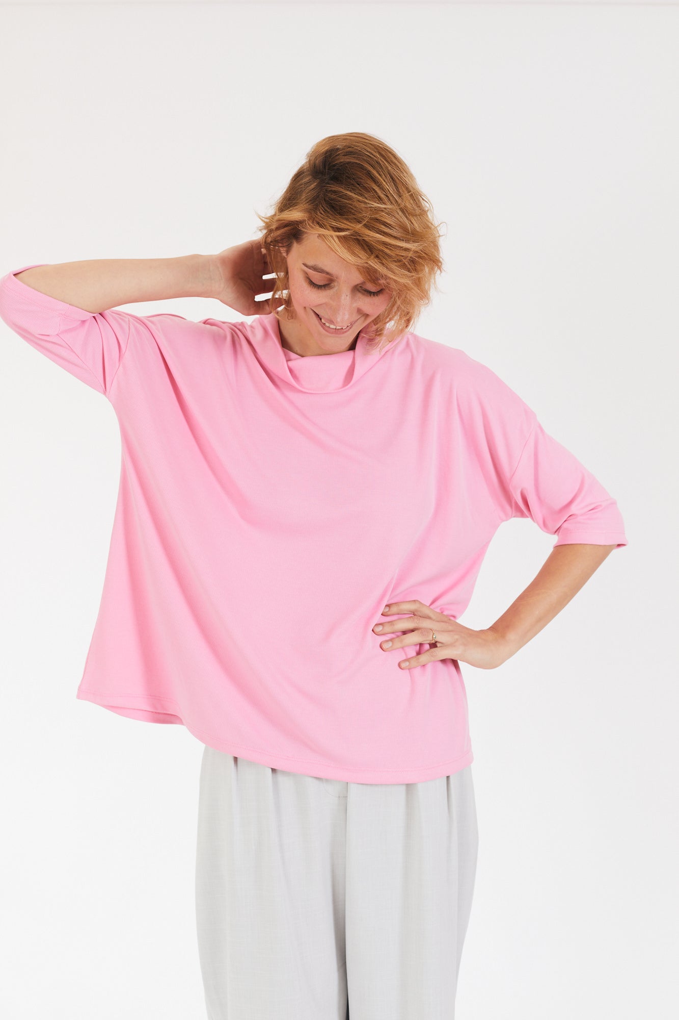 קצת אוברסייז, עם שרוול קצר ועם גולף נשפך
