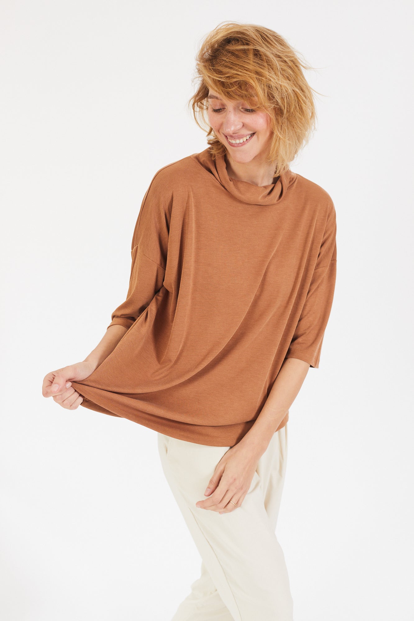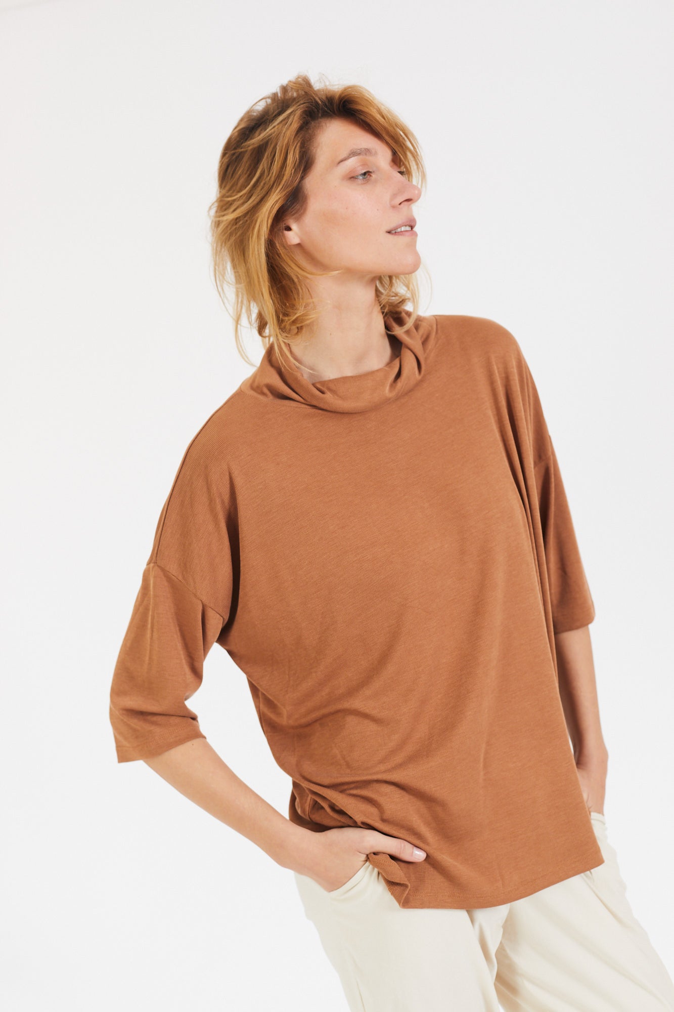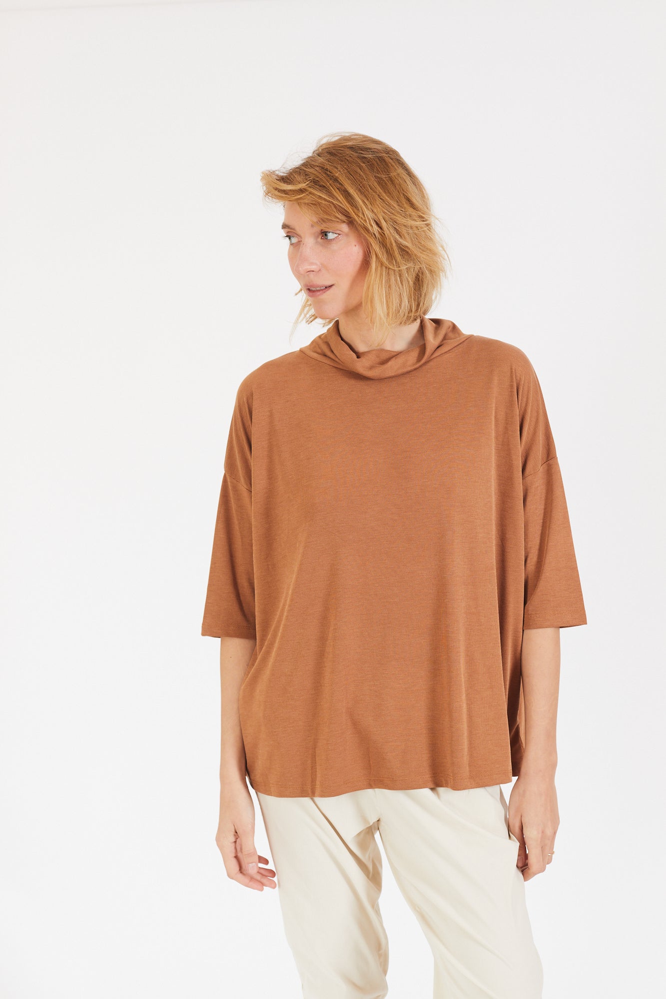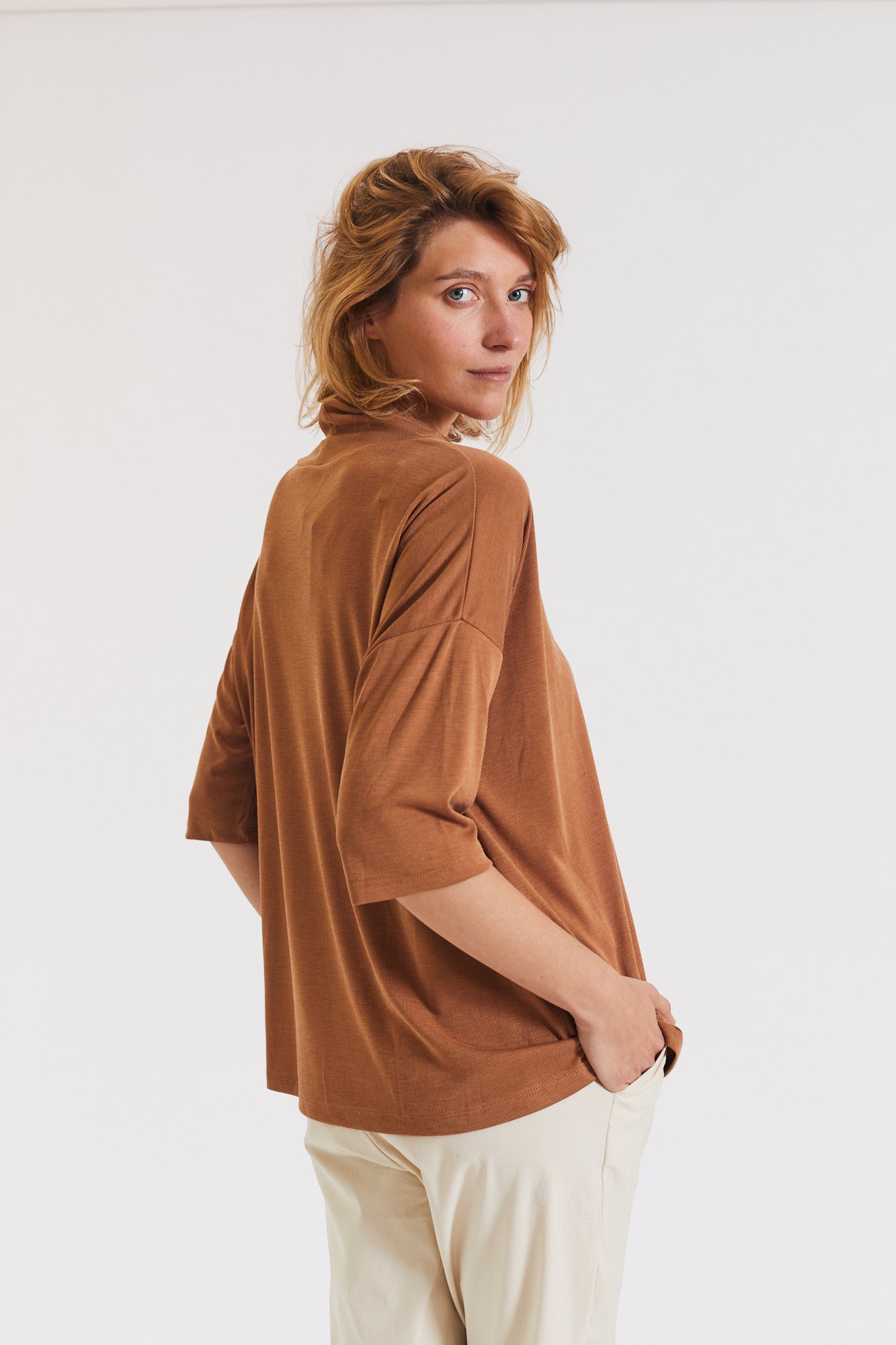 קצת אוברסייז, עם שרוול קצר ועם גולף נשפך
